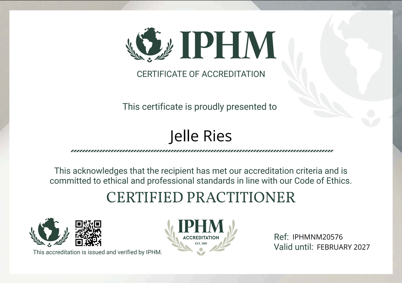 This accreditation confirms that our holistic health coaching practice meets the professional standards established by IPHM and is recognized within the international holistic and complementary wellness community.
